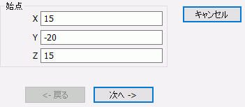パラメータ入力ダイアログに始点(X:15、Y:-20、Z:15)を入力し、 をクリックします。