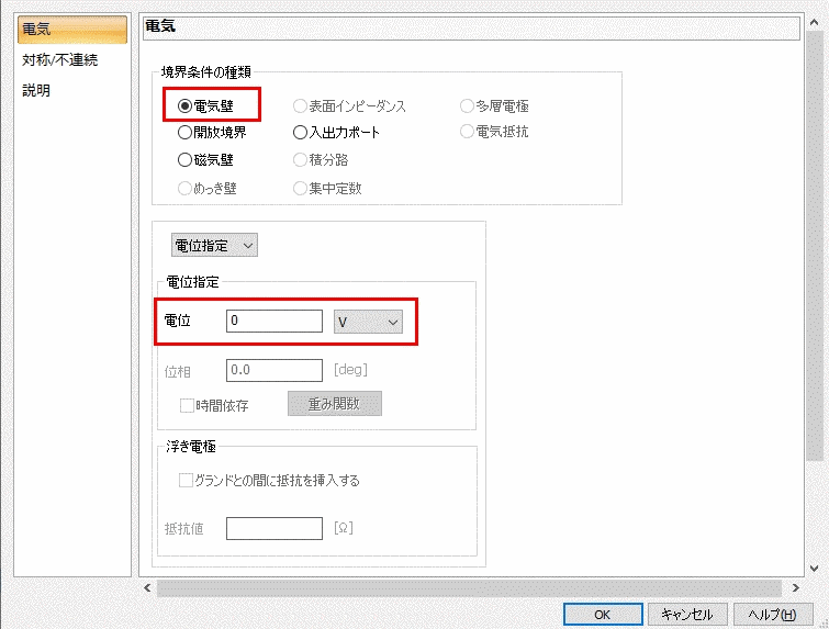 ホーム / チュートリアル / 電場解析(Coulomb) / 06.境界条件をつける
