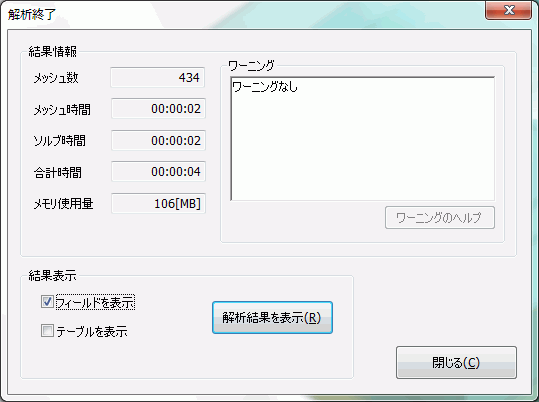 解析が終了すると、[解析終了]ダイアログが表示されます。