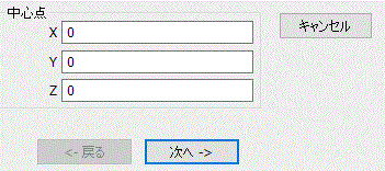 パラメータ入力ダイアログに中心点(X:0、Y:0、Z:0)を入力し、 をクリックします。
