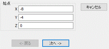 パラメータ入力ダイアログに始点(X:-8、Y:-4、Z:0)を入力し、 をクリックします。