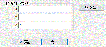 パラメータ入力ダイアログに引きのばしベクトル(X:0、Y:0、Z:9)を入力し、 をクリックします。