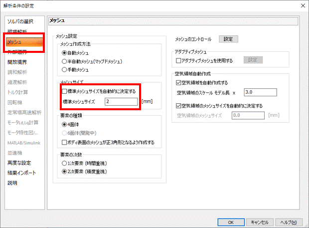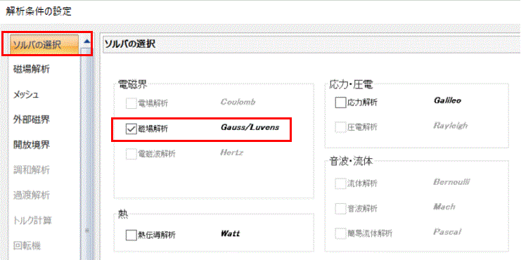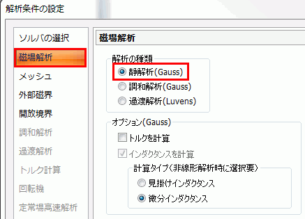 ホーム / チュートリアル / 磁場解析(Gauss、静解析) / 05.解析条件を設定する
