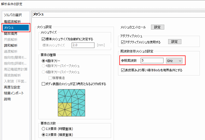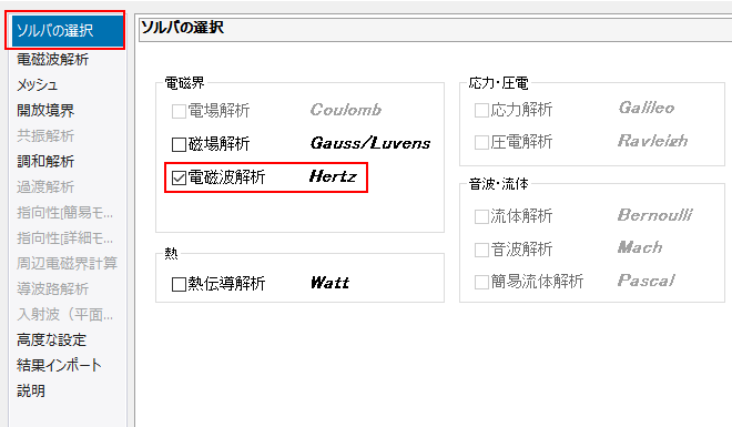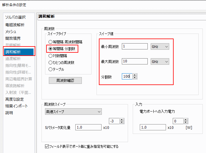 ホーム / チュートリアル / 電磁波解析(Hertz、3次元調和解析) / 06.解析条件を設定する