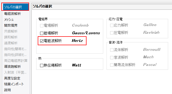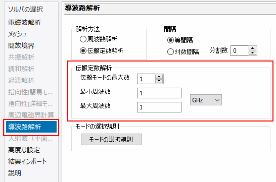 ホーム / チュートリアル / 電磁波解析(Hertz、2次元導波路解析) / 03.解析条件を設定する