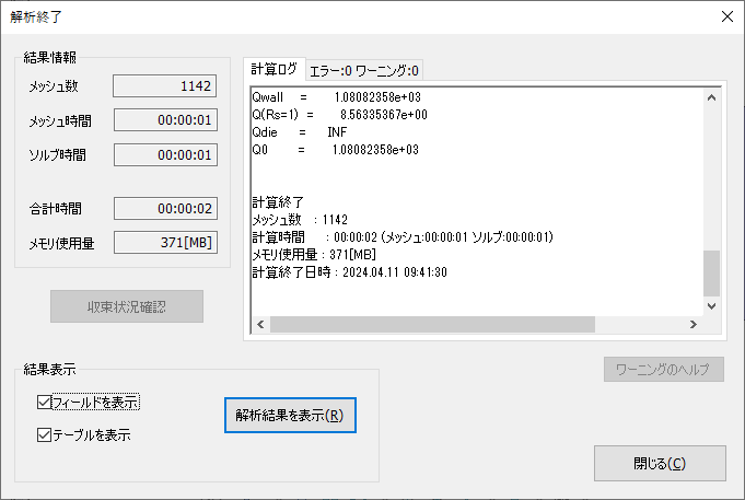 解析を実行します。