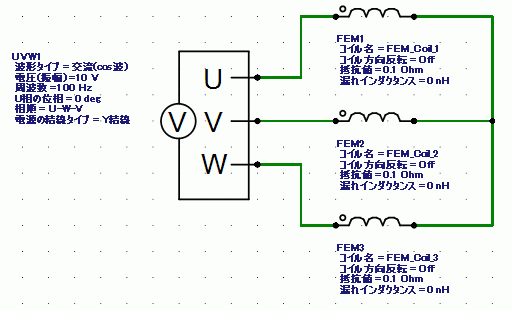 ホーム / チュートリアル / 磁場解析(Luvens、モータの過渡解析) / 08.外部回路図を定義する