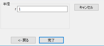 パラメータ入力ダイアログに半径:1を入力し、 をクリックします。