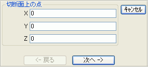 パラメータ入力ダイアログに切断面上の点(X:0、Y:0、Z:0)を入力し、 をクリックします。