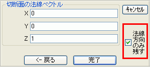 切断面の法線ベクトル(X:0、Y:0、Z:1)を入力し、 をクリックします。