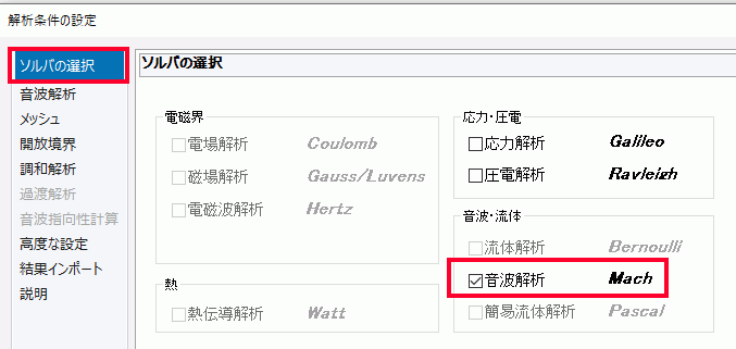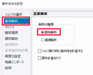 [ソルバの選択]タブで[音波解析