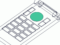 次に、中央ボタンを作図し、引きのばし機能を使って加工します。