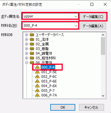 材料DBツリーの[06_圧電体]から[000_P-4]を選択し、