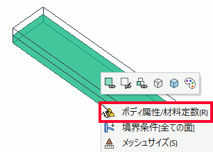 右クリックし、右クリックメニューから、[ボディ属性/材料定数]を選択します。