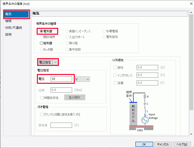 ホーム / チュートリアル / 圧電解析(Rayleigh) / 05.境界条件をつける