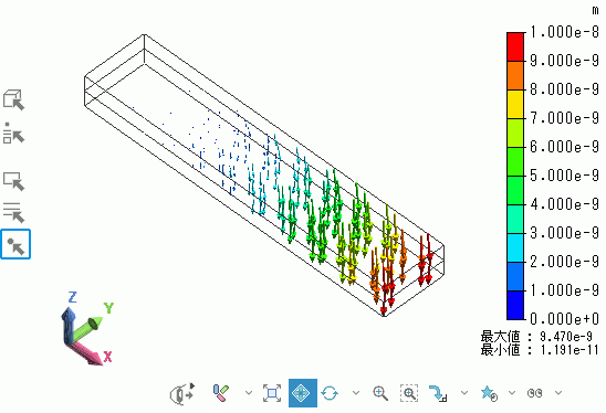 変位量のベクトル図、グラデーションコンター図、変位図を表示し、確認してみましょう。