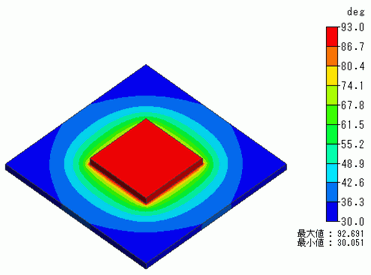 基板上に発熱体が配置されており、基板が空気中に置かれている場合の定常解析です。