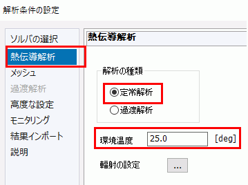 [ソルバの選択]タブで[熱伝導解析