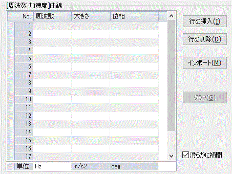 駆動する加速度を指定します。 加速度を角周波数で割ると速度になります。 周波数依存:ありを選択し、 |