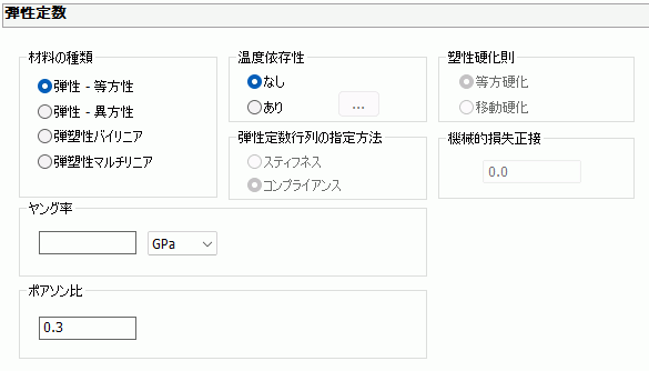 ホーム / ボディ属性、材料、境界条件の設定 / 材料定数タブ一覧 / 弾性定数タブ