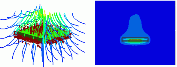 温度コンター図と流線の同時表示 |