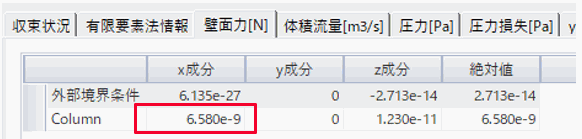 抗力F:流れ方向(x方向)の力は、6.58 x 10 ^ -9 [N]となっていることが分かります。