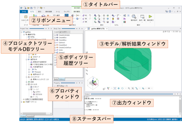 Femtetの画面は、ウィンドウ、メニュー、ツリーから構成されます。