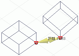 距離を計算したい座標を2点指定します。スナップモードが有効なのでボディの重心間の距離等の計算も可能です。