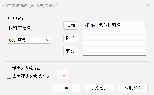 ホーム / 解析条件の設定 / 流体解析[Bernoulli] / 自由表面解析(VOF法)の設定