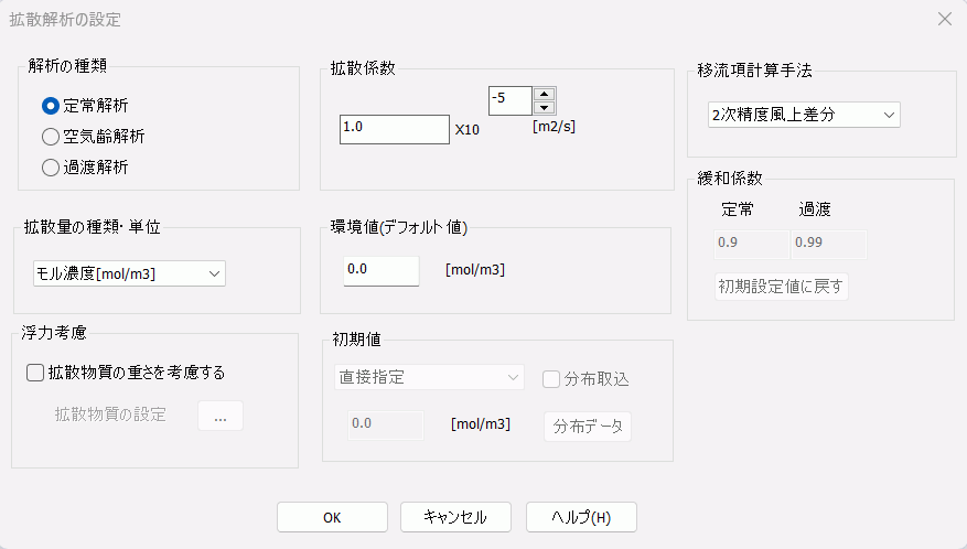ホーム / 解析条件の設定 / 流体解析[Bernoulli] / 拡散解析の設定