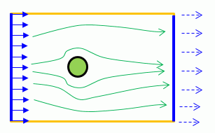 流体の周囲の面はの境界条件は、壁境界条件か流れ境界条件のいづれかになります。