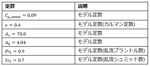K-εモデルの中でも、いくつかの乱流モデルがありますが、Kやεが負にならない等の実現性(realizability)の制約を課した「Realizable K-εモデル」(*1)を採用しています。