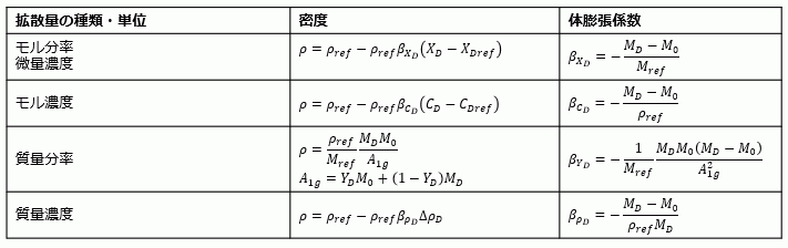 拡散物質の濃度差による浮力は以下の式で定義されます。