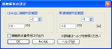 貫通接触判定範囲は初期値としては負の値が設定されており、この場合は上記の自動判定が実施されます。
