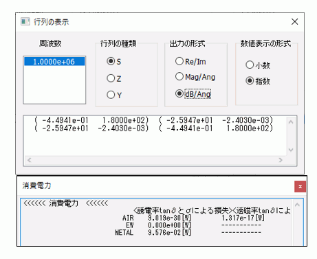 図2.数値解析結果(Sパラメータ(上図)、消費電力(下図))