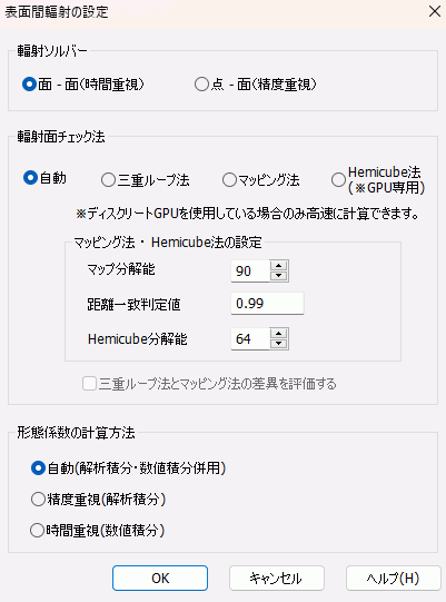 Hemicube法は面-面輻射でのみ使用できる方法になります。