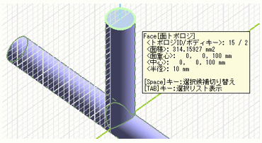 1. モデルウィンドウ上で、まず縦パイプ上面をハイライトして、クリックし、選択します。