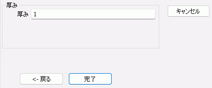 パラメータ入力ダイアログに厚み:1を入力し、をクリックします。