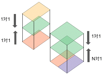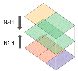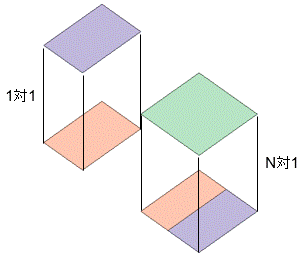 | 向い合う面が多対多です