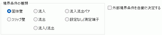 チェックがONのとき、解析条件の内部流れ/外部流れの設定、モデルの境界条件の設定状態に応じて外部境界の種類が自動的に決定します。