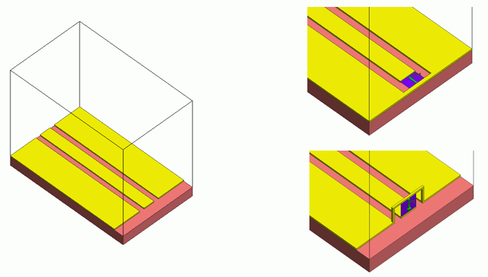 の内部ポート(2つの紫平面)を示しています。そこではチップ部品が置かれている場所に信号線をつなぐよう2枚の