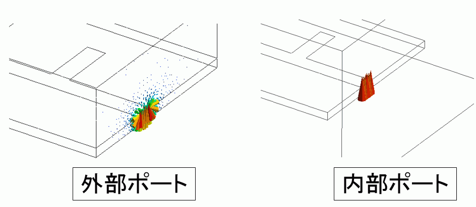 図2:外部ポート(左)と内部ポート(右)の電界分布 |