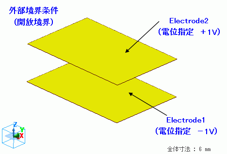 ホーム / 例題集 / 電場解析[Coulomb] / 例題1 平板コンデンサの静電容量計算