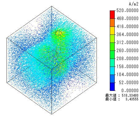 図2より、電流が支持部材に遮られるために、パーツ上部の電流密度が小さいことが分かります。