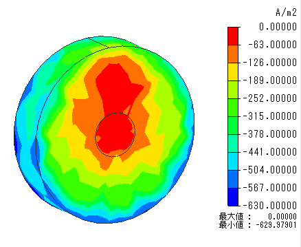 めっき液内の電流密度を図1に示します。