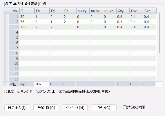 材料の種類:弾性-異方性 温度依存性:あり