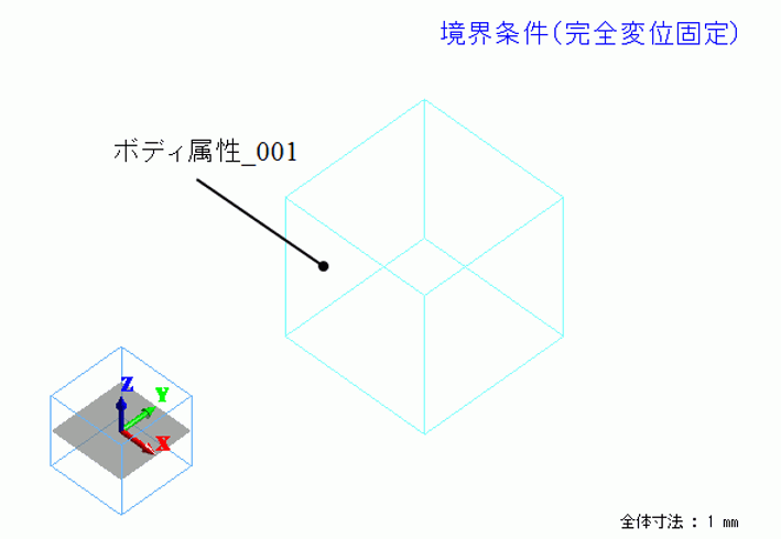 正六面体のボディに温度依存性のある異方性線膨張係数をもつ材料を設定し、さらに境界条件には変位の