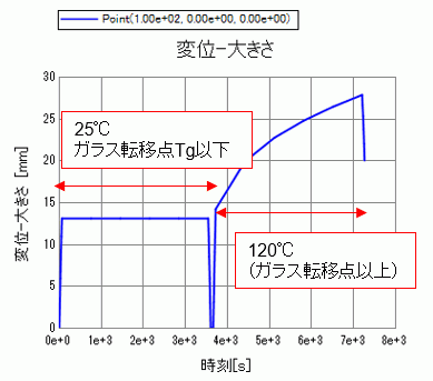 ガラス転移点より低い常温(25℃)から、ガラス転移点よりも高い温度(120℃)に切り替えて解析をするため、