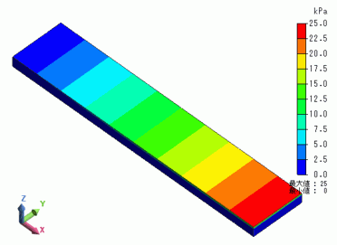 左側のエッジから右側のエッジまで、0から25 [kPa]に変化していることが確認できています。