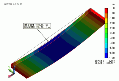 変位の最小値:689.597 [mm]( x = 26 [mm] )となっています。